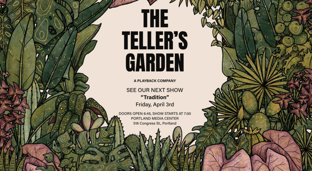 And then, on First Friday, the Improv is back with Teller’s Garden in the studio, and we will have a little bit of some music in Congress Street Studio hosted by our associate producer, Stella, as she sets to jet to the west coast. She’s put together a little 4-6pm entertainment center up front before Teller’s Garden hits the stage. Some come and enjoy a little music then watch the improvisation from the talent of Teller’s Garden.